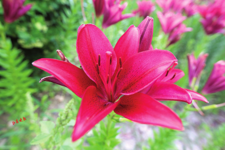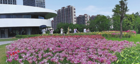 百合花種類(lèi)繁多,形態(tài)各異。純凈高雅的白色、熱情嫵媚的紅色、明麗澄澈的橙黃、浪漫俏皮的粉紅、雍容華貴的紫色,形似漏斗,又如喇叭,或向上開(kāi)花,張揚(yáng)外翻、極端華麗,或含露低垂,矜持含蓄、超凡脫俗?;ㄩg蜂蝶飛舞,暗香浮動(dòng),游人三五成群,在花叢合影拍照,游玩嬉戲,好不愜意。市民王女士對(duì)這里贊賞有加:“看到這五顏六色的百合花,我的心情像盛開(kāi)的花一樣,特別美!這里每季有每季的花開(kāi),每次來(lái)都有不一樣的驚喜和精彩?!?/p>