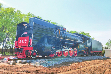 如今,大東溝成了煤礦生產設備的“露天博物館”,陳列著井下使用過的綜采支架、掘進機、齒軌車、風機、高壓開關、移動變電站、礦用潛水泵等40余種、近300件設備,為中國煤礦不同歷史發(fā)展階段保留了珍貴標本。其中,有兩處展品更為引人注目:一是一臺時速80公里、牽引力324千牛的前進型蒸汽機車,1975年由大同機車廠生產,1994年由潞安集團統(tǒng)一安排承擔石圪節(jié)煤礦和兄弟礦井的煤炭外運及漳澤電廠的煤炭直送任務,是潞安集團首批鐵路運輸牽引機車,直到2007年機車轉型升級后停用。如今,這臺蒸汽機車已經成為一代人的記憶,也是不少人打卡的網紅地標。還有一處是給人留下深刻印象的軌道墻。兩道長6米的水泥墻,墻體里鑲嵌著從石圪節(jié)井下運上來的標有不同年代的道軌,如產于1902年的德國道軌、產于1905年的比利時道軌、產于1915年的由漢陽鐵廠制造的道軌等。這些標有生產年代的道軌,當年在井下作為支撐物或巷道頂棚使用,如今成為石圪節(jié)煤礦發(fā)展歷程的見證,默默地向人們訴說石圪節(jié)開采歷史的久遠。