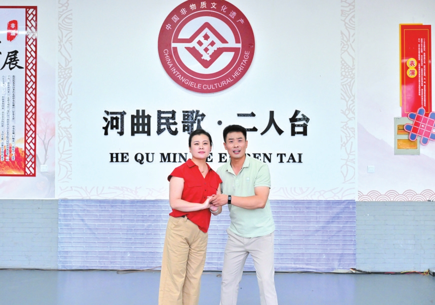 走進(jìn)河曲縣白樸公園,一段清亮婉轉(zhuǎn)的唱腔便隨風(fēng)入耳——河曲縣民歌二人臺(tái)藝術(shù)團(tuán)演員鄔光正和同事們?nèi)橥度耄蚰ゴ笮头沁z音樂劇《大河長歌》。他額角滲著細(xì)密的汗珠,當(dāng)唱到“好兒女今日唱長歌,勝過了前輩了不得”時(shí),突然停了下來,對(duì)搭檔說:“再來一遍,剛才那口氣沒頂滿?!边@份對(duì)細(xì)節(jié)的較真,藏著他對(duì)二人臺(tái)藝術(shù)最樸素也最深厚的敬畏。