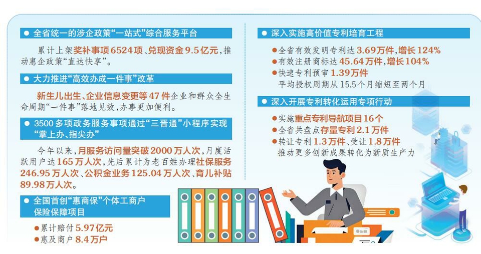 營商環(huán)境是企業(yè)生存發(fā)展的土壤?!笆奈濉币詠恚沂∈冀K將優(yōu)化營商環(huán)境作為高質(zhì)量發(fā)展的關(guān)鍵支撐。全省市場監(jiān)管系統(tǒng)、審批服務(wù)系統(tǒng)立足職能、改革創(chuàng)新、攻堅克難,從政務(wù)服務(wù)、數(shù)字賦能、市場監(jiān)管、質(zhì)量安全等多維度發(fā)力,推動全省營商環(huán)境持續(xù)優(yōu)化、市場活力充分迸發(fā),為全省全方位轉(zhuǎn)型發(fā)展筑牢堅實基礎(chǔ)。