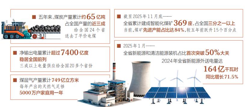 穩(wěn)產(chǎn)保供有力有效。“十四五”期間,全省新增產(chǎn)能1.5億噸/年,日均產(chǎn)量穩(wěn)定在350萬噸以上,累計生產(chǎn)原煤約65億噸,占全國總產(chǎn)量的近三成;以長協(xié)價為24個省份保供電煤20億噸以上,有力保障了國家經(jīng)濟(jì)社會發(fā)展用能需要。